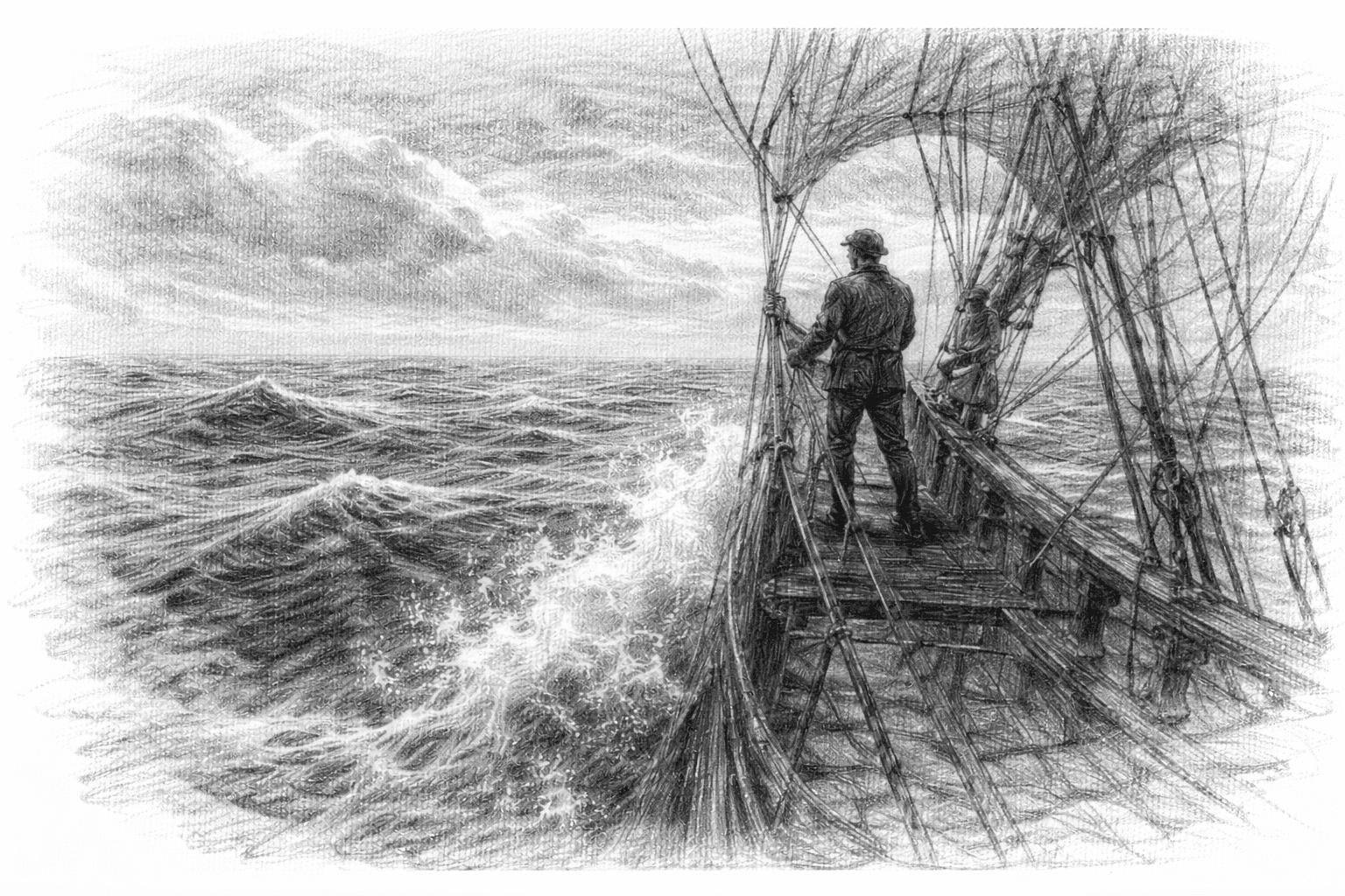 A young Norwegian leaves the island of his birth at the end of the age of sail. He carries a sea-chest, a confirmation Bible, a borrowed knife, and a promise to the girl he means to marry. Over seven years and as many voyages he will find out what the horizon takes and what it gives back — and he will come home carrying something he cannot yet name, not even to himself.